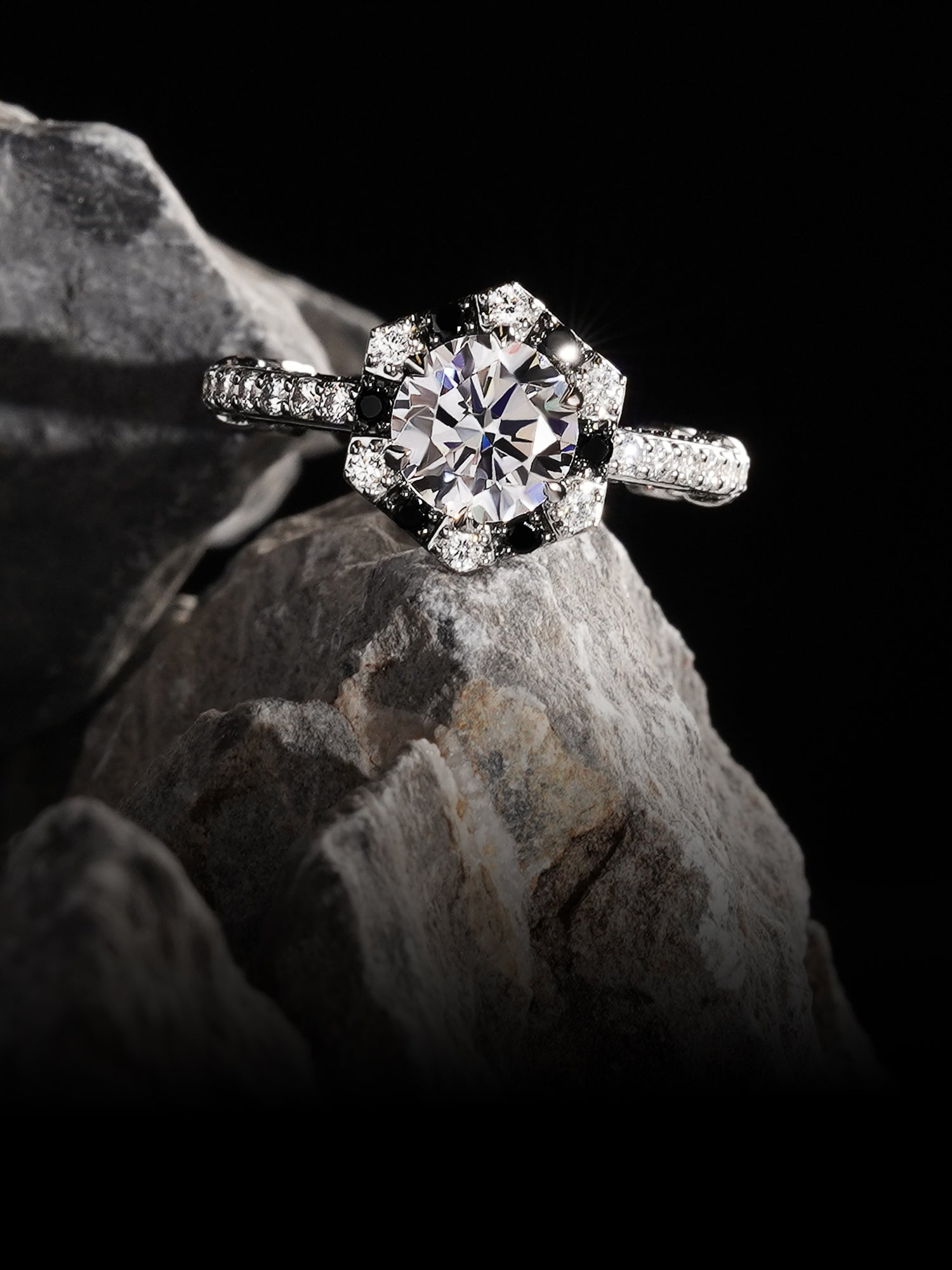 Let the dark side dominate your destiny with the sleek and edgy combination of metals, diamonds, and gemstones carefully designed to exemplify the power of the darkness.
