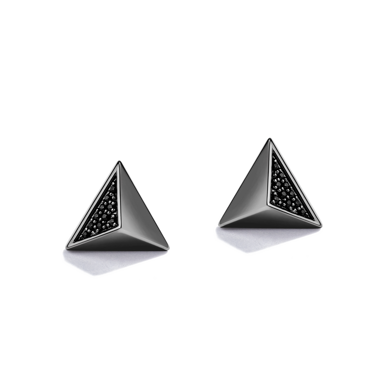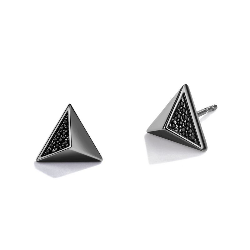 Inspired by Darth Vader™, the enforcer of the Galactic Empire. Allow yourself to be seduced by the dark side, with the sleek black diamond accented triangle stud earrings. Designed to evoke Lord Vader's powerful armor.