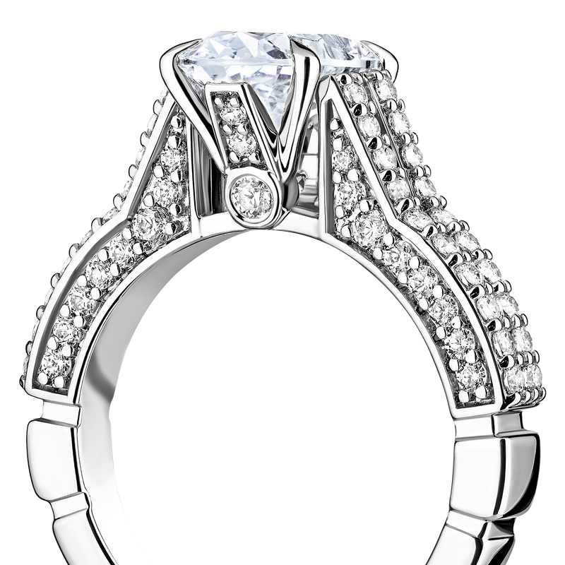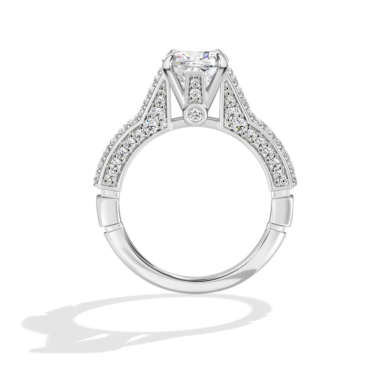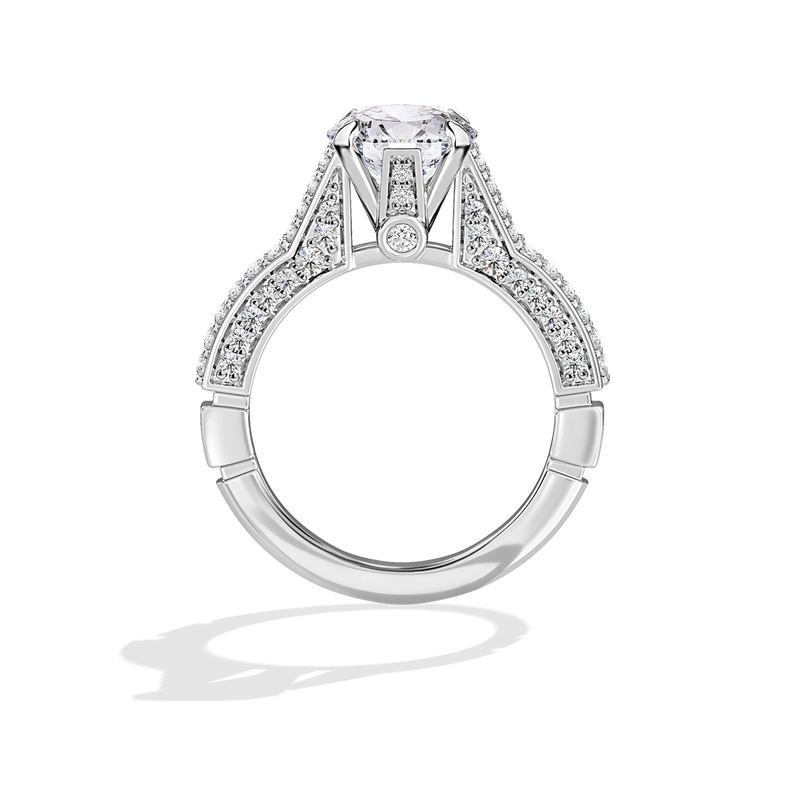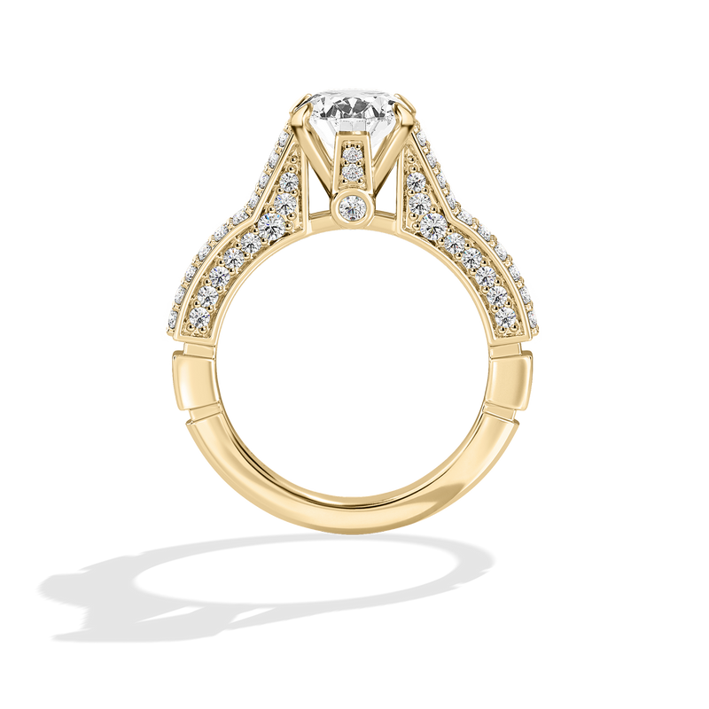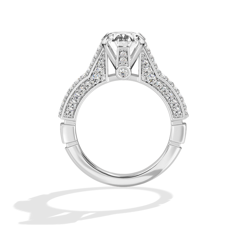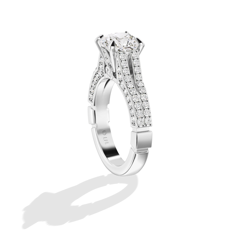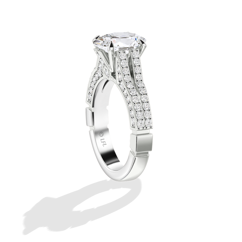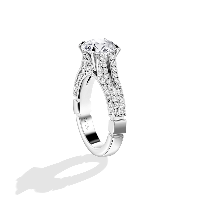Join us on an interstellar journey of love with our engagement ring inspired by the iconic Millennium Falcon from Star Wars™. Crafted with precision and passion, this ring captures the essence of the galaxy's fastest starship in a design as timeless and enduring as the love it represents. At the heart of this celestial creation sits a brilliant lab grown diamond, symbolizing the dazzling allure of the galaxy. The curves and contours of the band capture the essence of the starship's aerodynamic design, creating a wearable piece of Star Wars™ legacy.