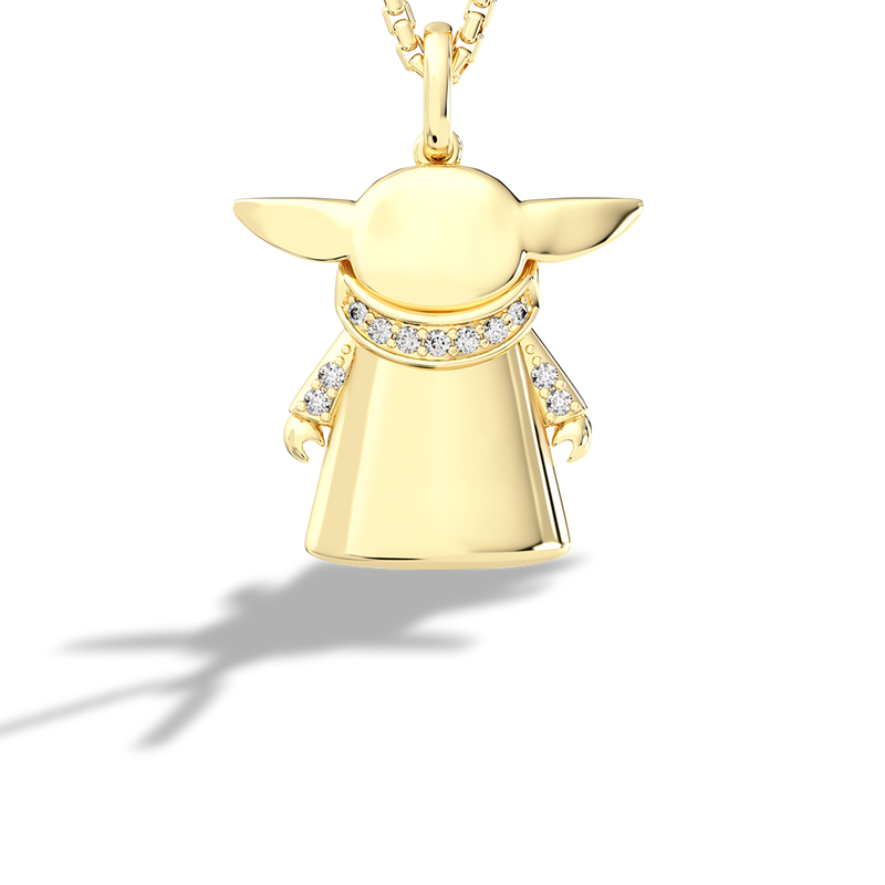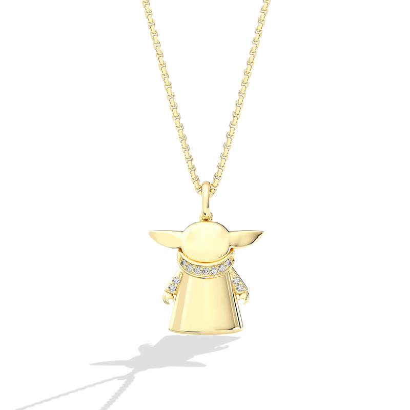 Fully embrace the intrigue of Grogu™ with this 10K personalized pendant carefully crafted in the shape of the mysterious creature. Set in 10K, this pendant features 1/10 ct.tw. diamonds with a name or a message - up to 8 characters in length - inscribed in the font you select.