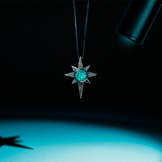 Inspired by the guardians of peace and justice in the galaxy, this lustrous pendant emanates the power of light to see through the darkness and bring balance to our destiny. Designed with the star motif iconic to the Jedi Order, this piece embodies the enduring phrase: “May the Force be with you.”