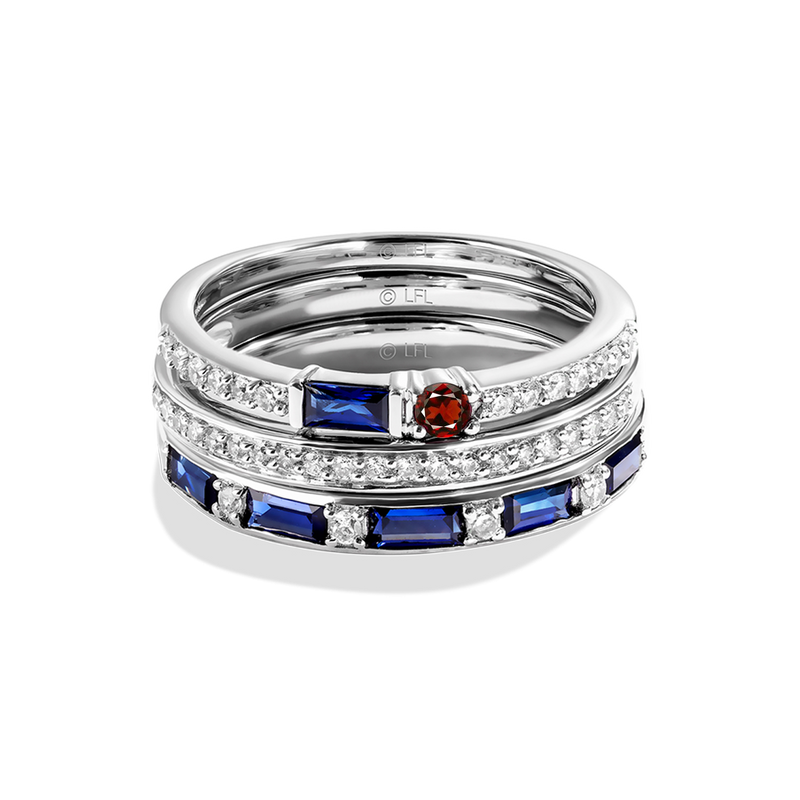 Women's Stackable Ring Set with Blue Sapphire, Garnet and 1/3 CT.TW. Diamonds set in Sterling Silver