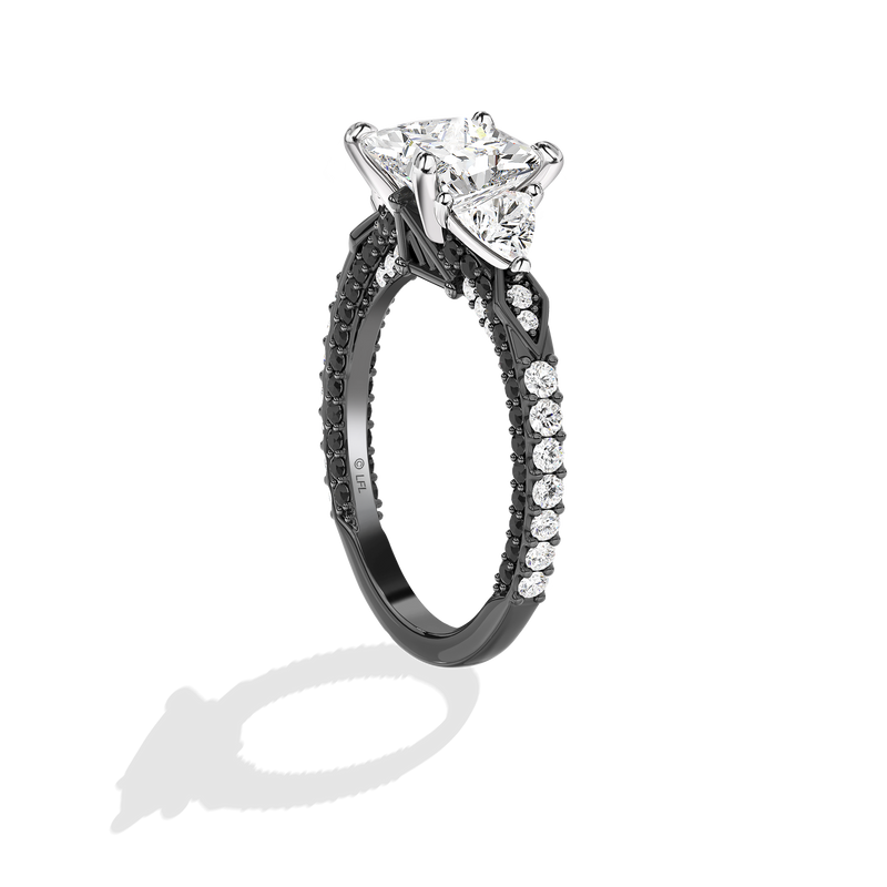 Dark, daring, and unforgettable, this Galaxy Star Engagement Ring draws inspiration from the commanding presence of Darth Vader™ . Featuring bold black spinel and shimmering lab grown diamonds, the design is set in a striking blend of 14K white and yellow gold with black rhodium. A tribute to strength, resilience, and a love that defies expectations, this ring is made for the one who leads with power and passion.