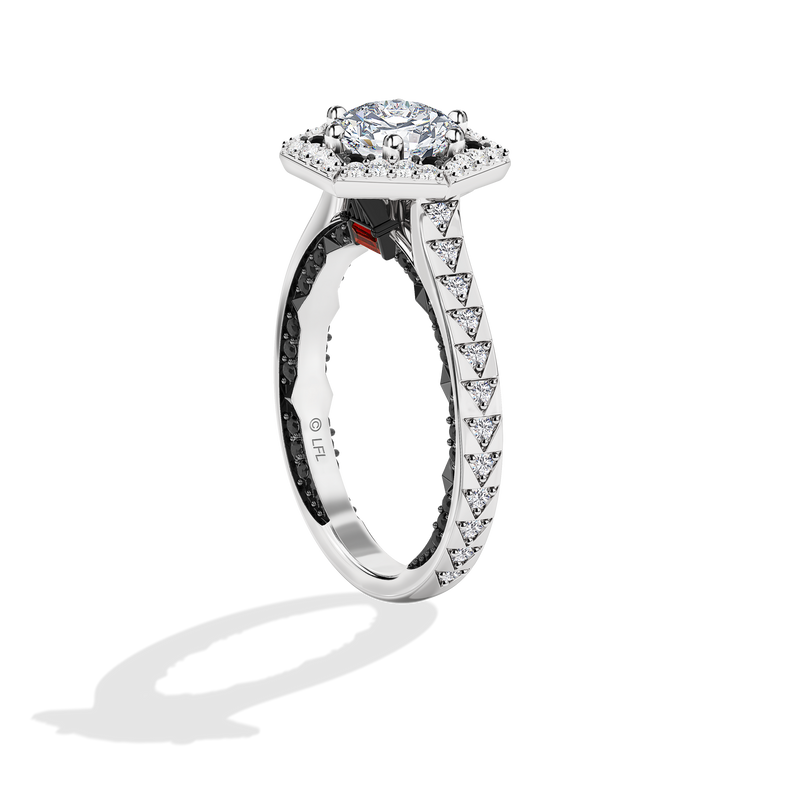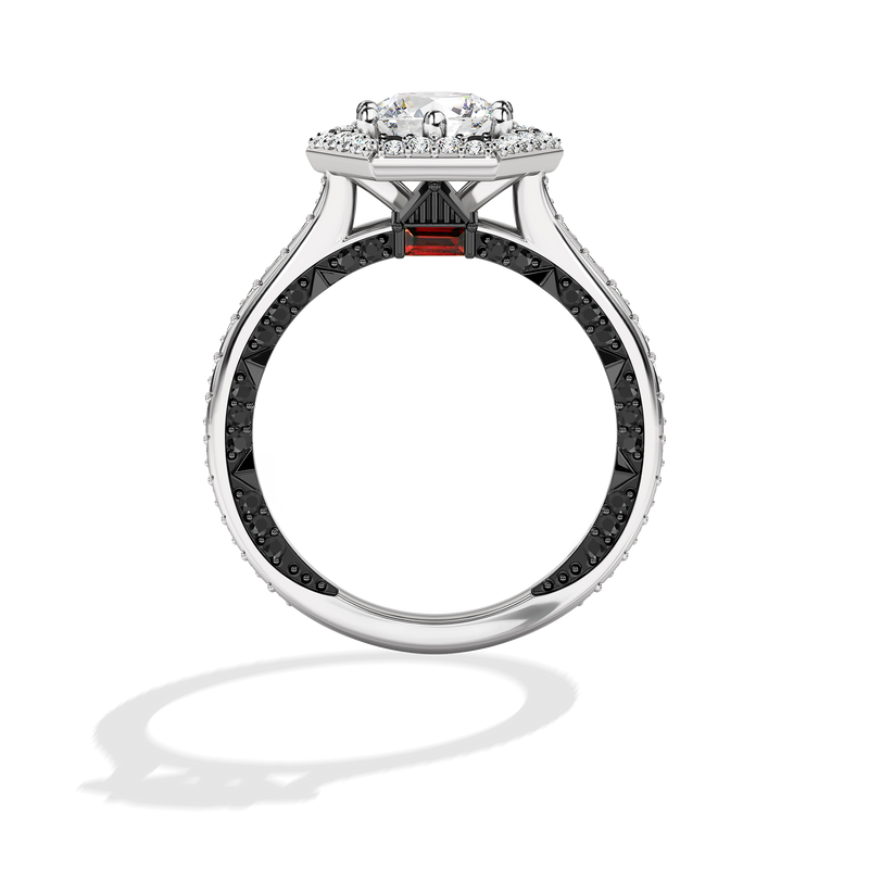 Fierce and unforgettable, The Darth Vader™ ring combines the passion of garnet, the strength of black spinel, and the brilliance of lab-grown diamonds. Set in 14K white, yellow gold, and black rhodium, it’s the perfect symbol of a love that defies expectations.