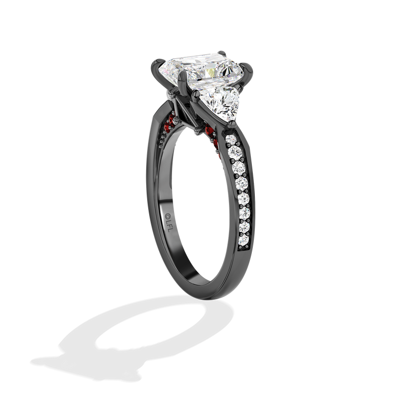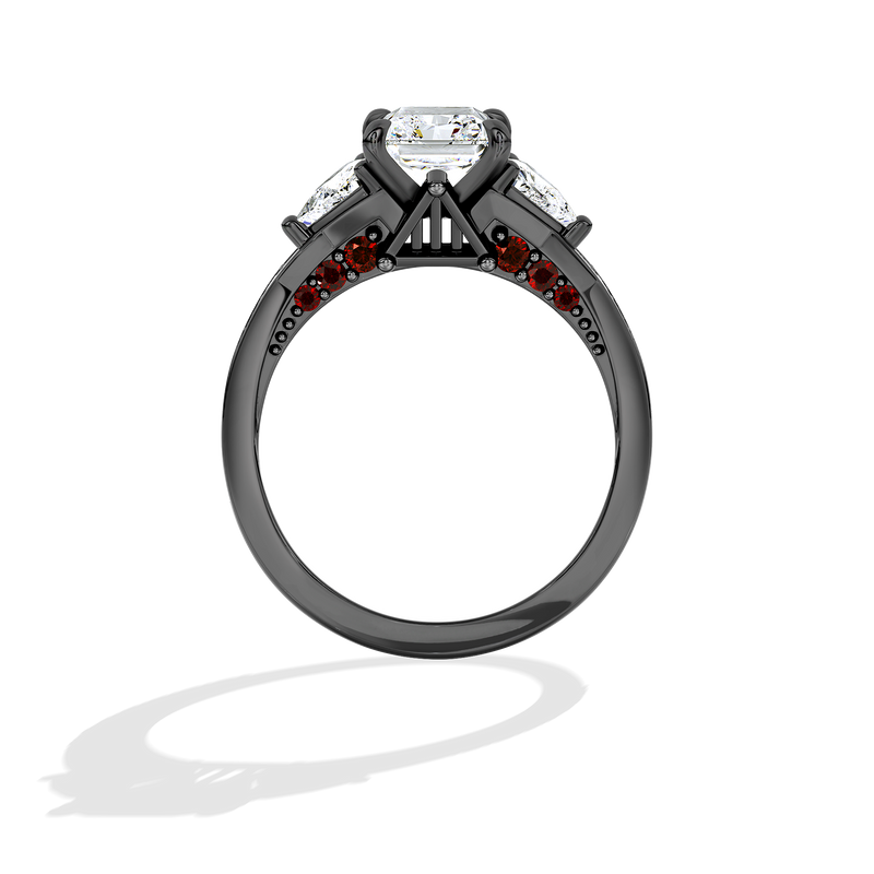 Women's Galaxy Star Engagement Ring with Garnet and Lab Grown Diamonds set in 14K White Gold and Black Rhodium