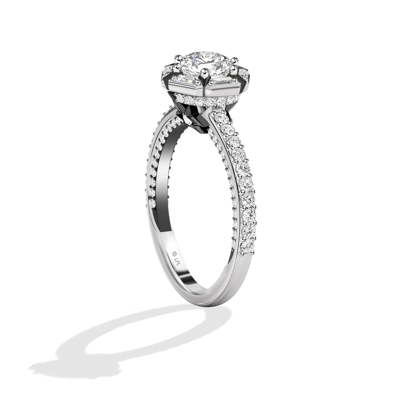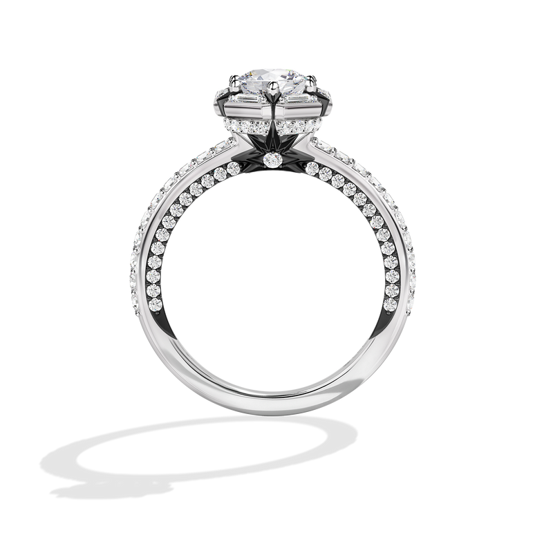 Women's Galaxy Star Engagement Ring with Lab Grown Diamonds set in 14K White Gold and Black Rhodium
