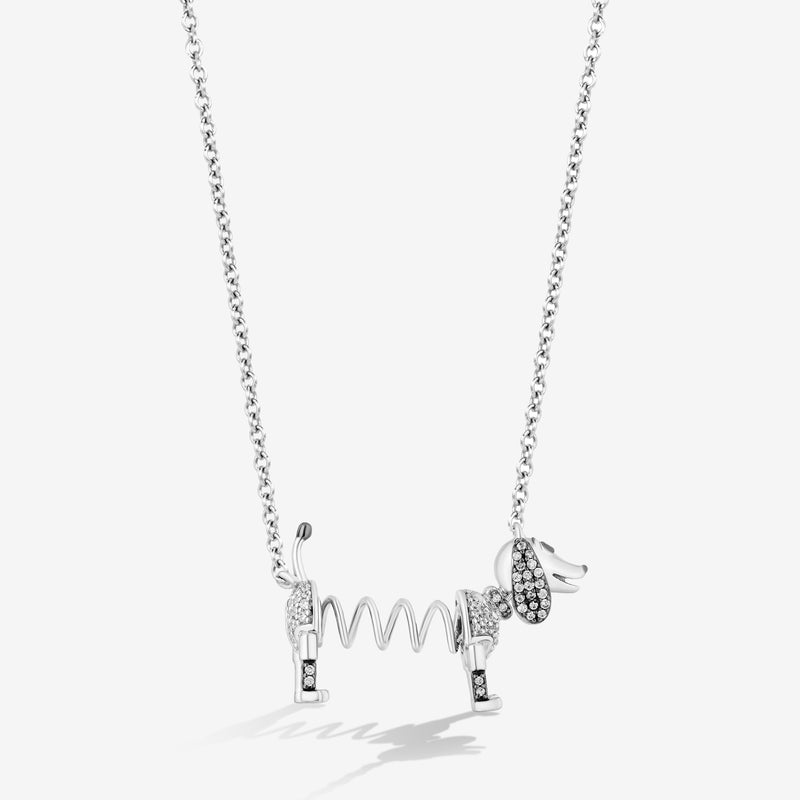 Stretch your style with the charm of Slinky Dog. This sterling silver necklace, finished in black rhodium and accented with 1/10 CT.TW. of diamonds, captures the joyful spirit and loyal heart of Toy Story’s most flexible friend.